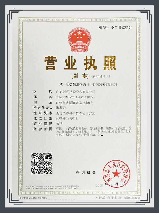 • 國家級高新技術企業(yè)證書、中國(試驗測試儀器)十佳品牌。